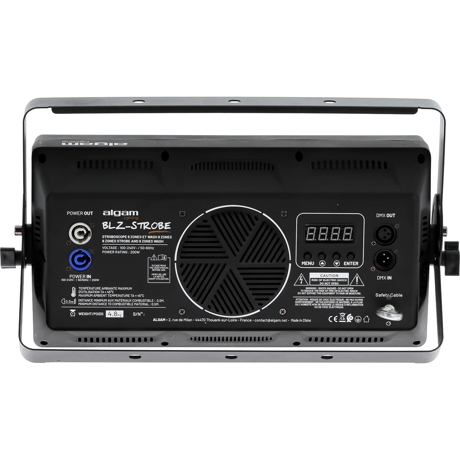Il BLZ-STROBE di Algam Lighting è il proiettore ideale per creare effetti visivi sorprendenti e coinvolgenti. Dotato di uno Strobo a 8 zone con 80 LED bianchi e 640 LED RGBW distribuiti in 4 zone superiori e 4 zone inferiori, garantisce un’illuminazione potente e versatile per ogni evento. La fila centrale di Led bianchi ad alta potenza produce effetti stroboscopici nitidi e intensi, enfatizzati dal tubo ottico trasversale che ne amplifica la brillantezza. Animazioni scorrevoli, chase e flash sincronizzati permettono di evidenziare i momenti più importanti dello spettacolo. La matrice Wash RGBW a 8 zone indipendenti, posizionata ai lati dello strobo centrale, offre colori vivaci, pastello, animazioni dinamiche e tinte piatte potenti, aggiungendo profondità e movimento alla scena. La combinazione tra Strobo bianco ultra potente e Wash a colori matrizzabile rende BLZ STROBE uno strumento versatile, perfetto per arricchire scenografie in discoteche, eventi live e configurazioni scenografiche di grande impatto.