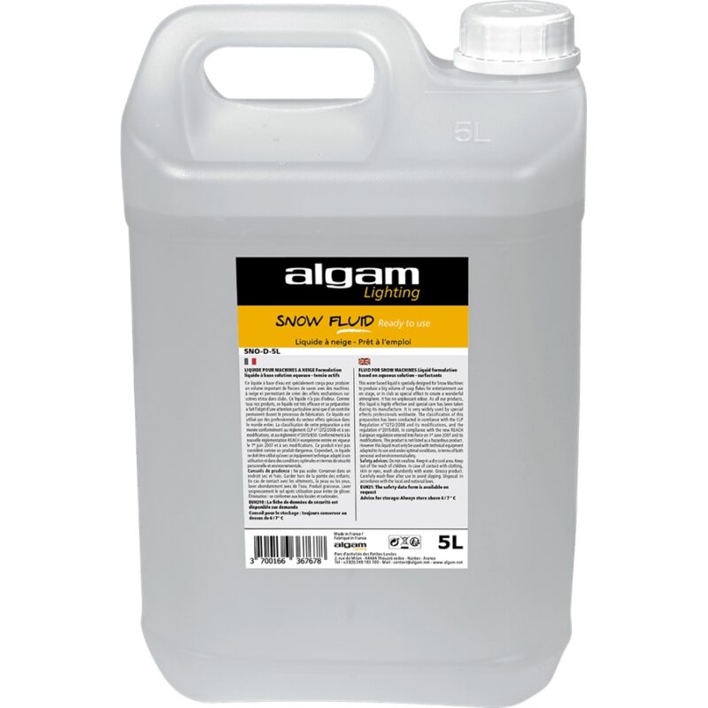 SNO-D-5L è il liquido per la creazione di neve artificiale di Algam Lighting pronto all’uso e compatibile con la maggior parte delle macchine da neve presenti sul mercato. Tanica da 5 litri.