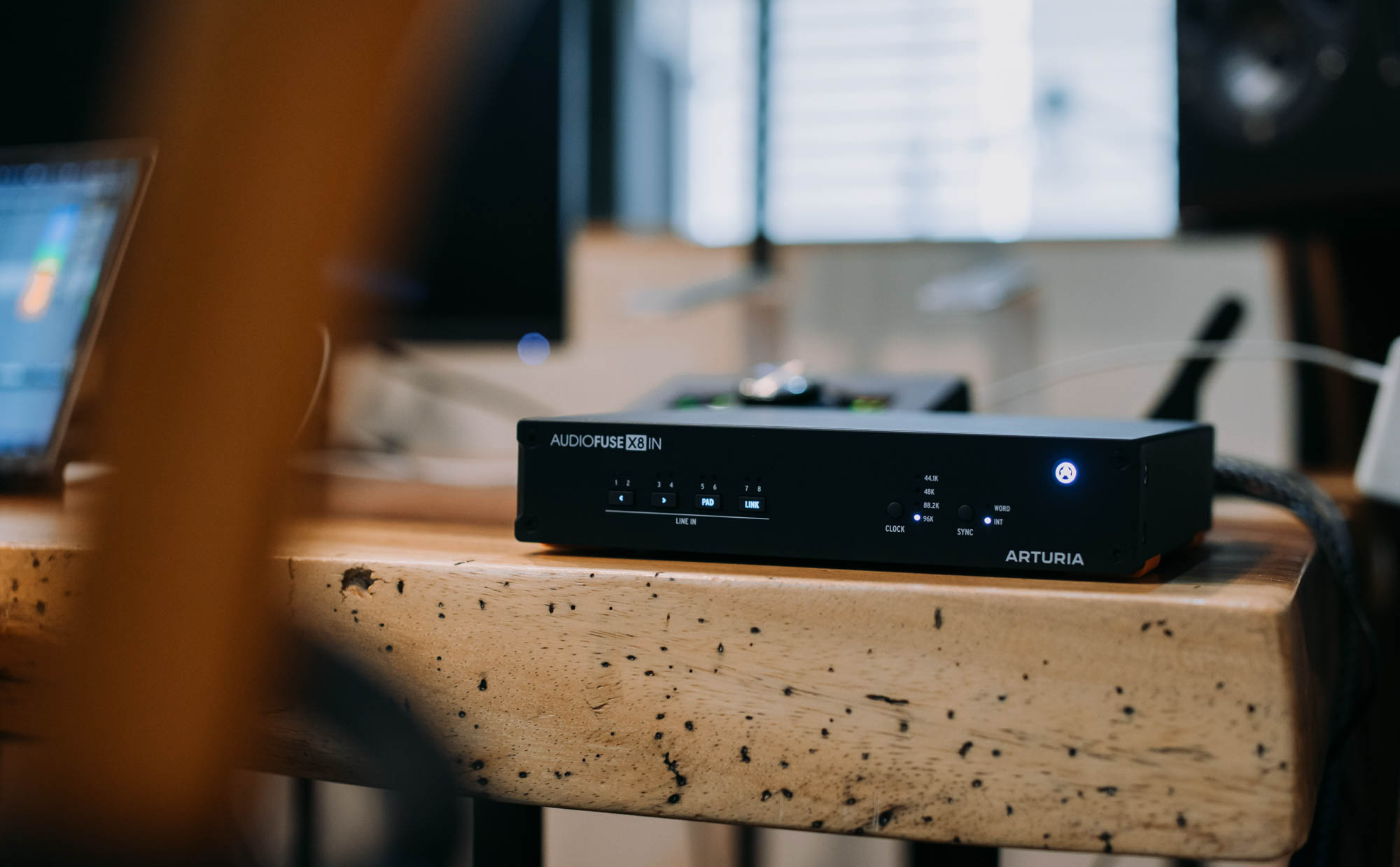 Arturia AudioFuse X8 IN è un convertitore/expander ADAT che aggiunge 8 canali linea bilanciati a qualsiasi interfaccia dotata di porta ADAT IN, con conversione A/D fino a 24-bit/96kHz, pad commutabile –12dB per canale, gestione stereo Link e sincronizzazione via ADAT o Word Clock su BNC. Risposta in frequenza (A/D) 20Hz–20kHz ±0,06dB (typ), gamma dinamica 119dB (A-weighted): pensato per tenere sempre connessi synth, outboard e sorgenti line-level senza cambiare cablaggi.