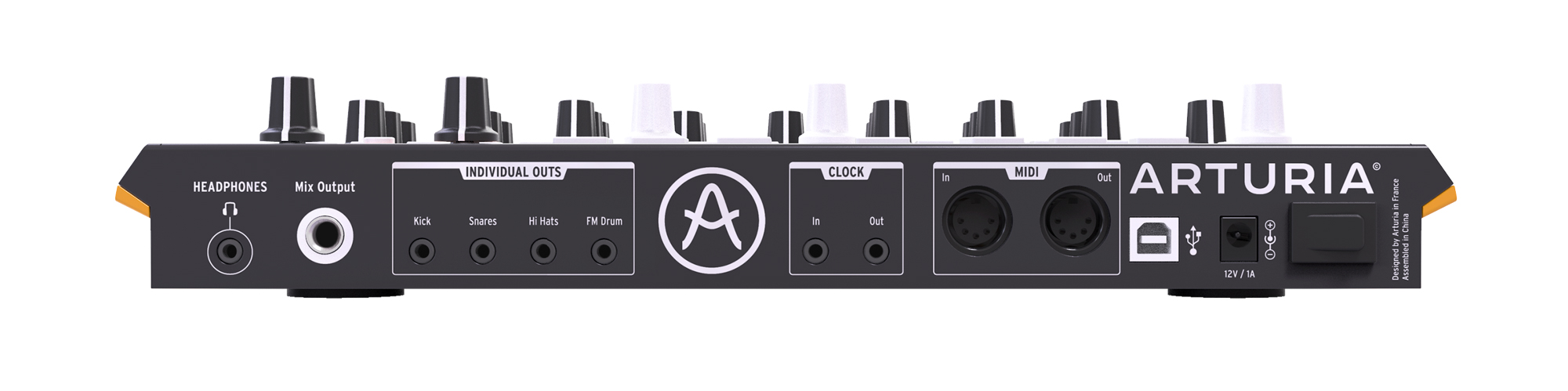 La connettività di DrumBrute Impact consente l’integrazione in qualsiasi setup. Oltre alle connessioni MIDI, USB e clock analogico, sono presenti quattro uscite separate dedicate a kick, snare, hi-hat e voce FM, utili per il processing individuale tramite mixer o outboard esterni. L’uscita cuffie dedicata e la gestione intelligente del metronomo facilitano l’utilizzo in contesti live.