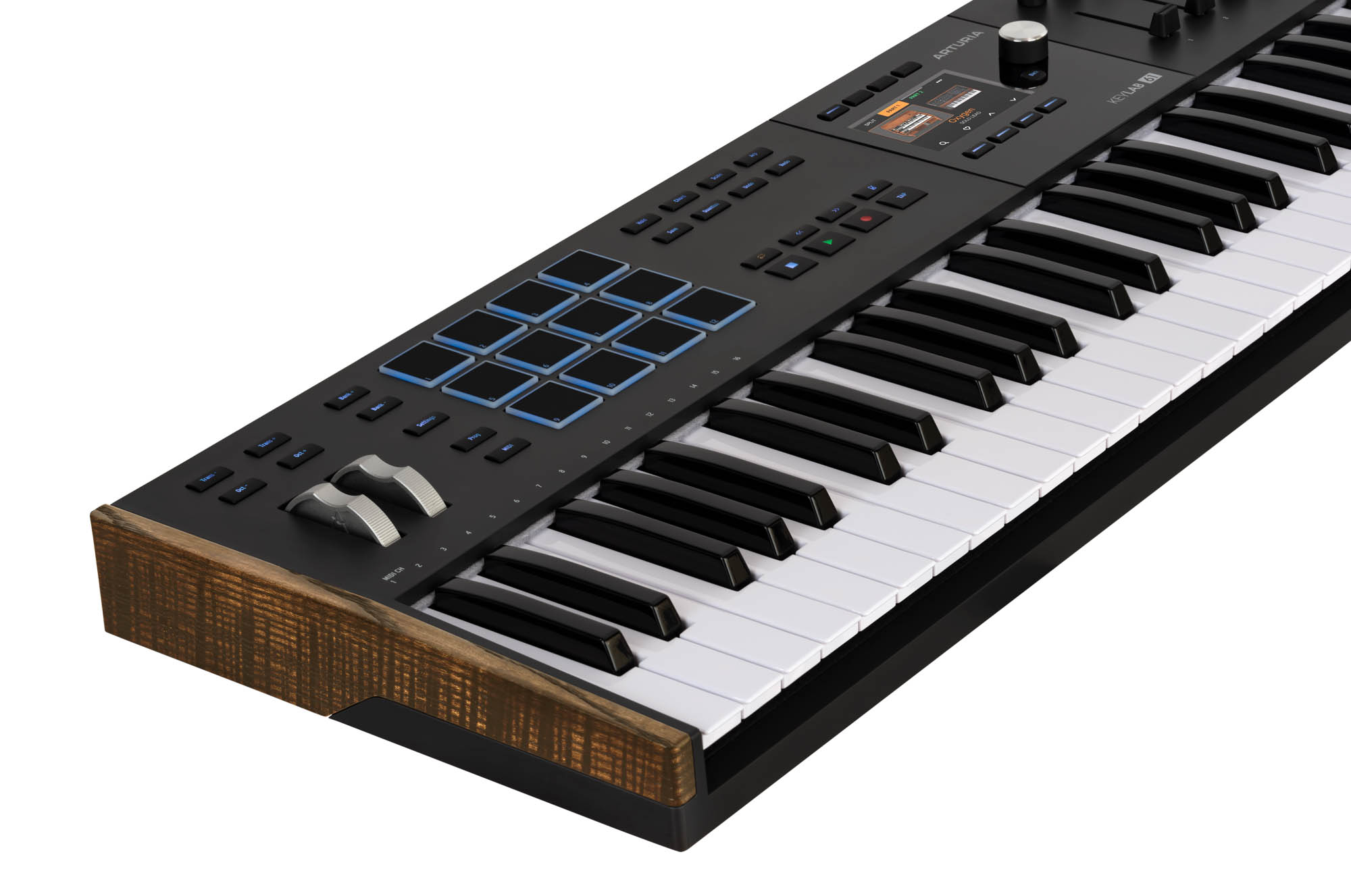 • Tastiera: 61 tasti semi-pesati sensibili a velocity e aftertouch (channel aftertouch)
