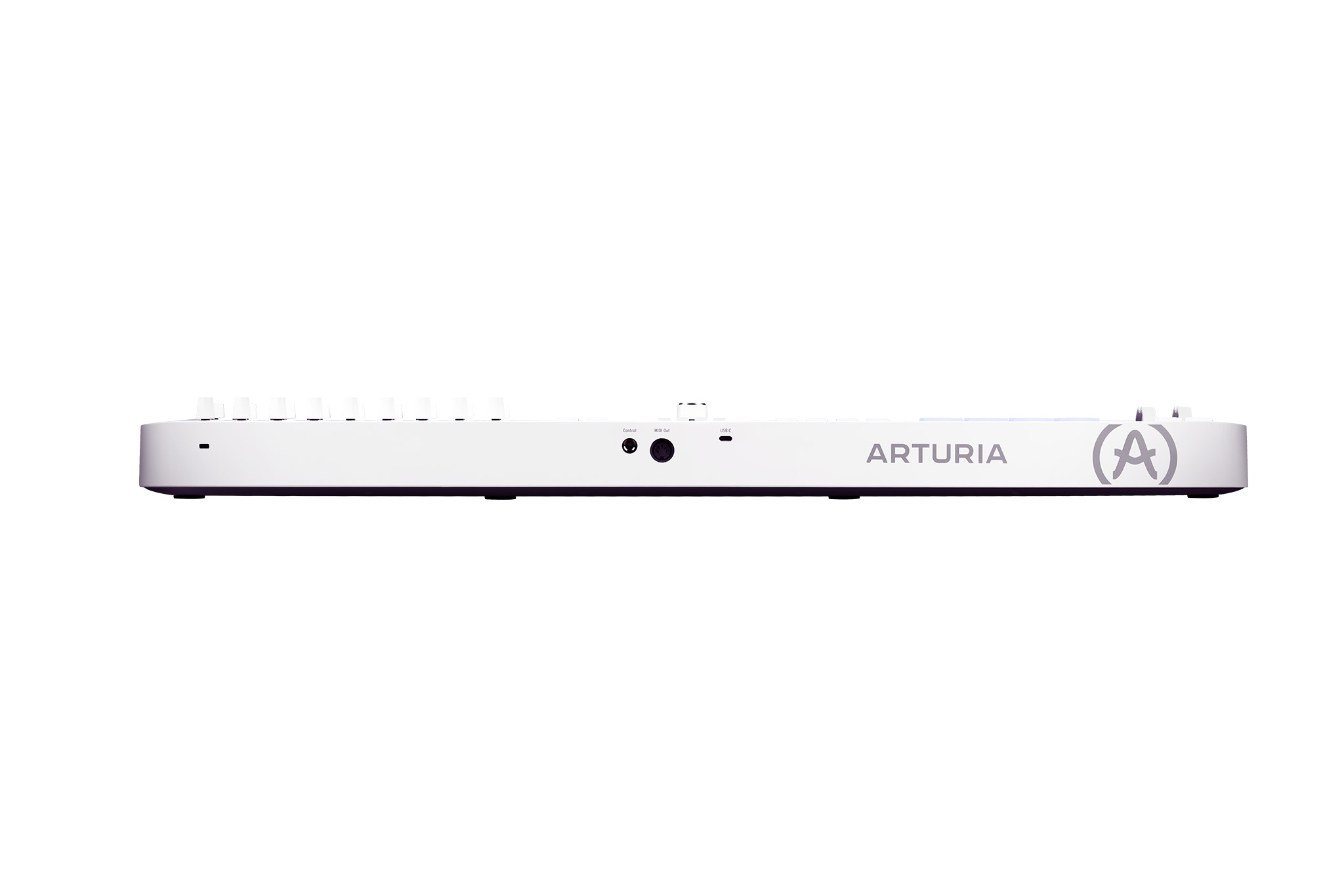 Oltre alla connessione USB-C (alimentazione e MIDI), la presenza di MIDI Out a 5 poli rende semplice controllre synth e drum machine esterne e sincronizzare hardware nel tuo progetto. L’ingresso pedale è multi-funzione: può essere configurato come sustain, footswitch o expression, così da adattarsi a playing e performance. La variante White mantiene identiche tutte le connessioni e la stessa dotazione funzionale.