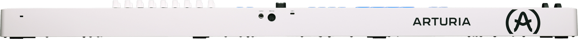 Oltre alla connessione USB-C (alimentazione e MIDI), la presenza di MIDI Out a 5 poli rende semplice controllare synth e drum machine esterne e integrare hardware nel tuo progetto. L’ingresso pedale è multi-funzione: può essere configurato come sustain, footswitch o expression, così da adattarsi a playing e performance. La variante White mantiene identiche tutte le connessioni e la stessa dotazione funzionale.