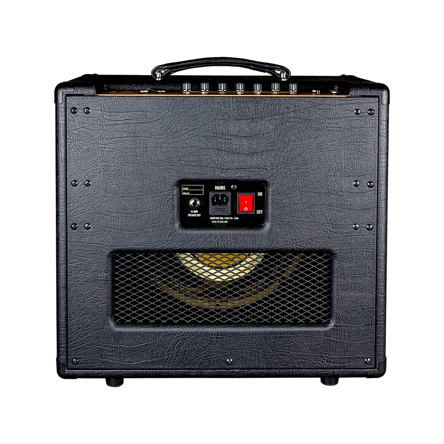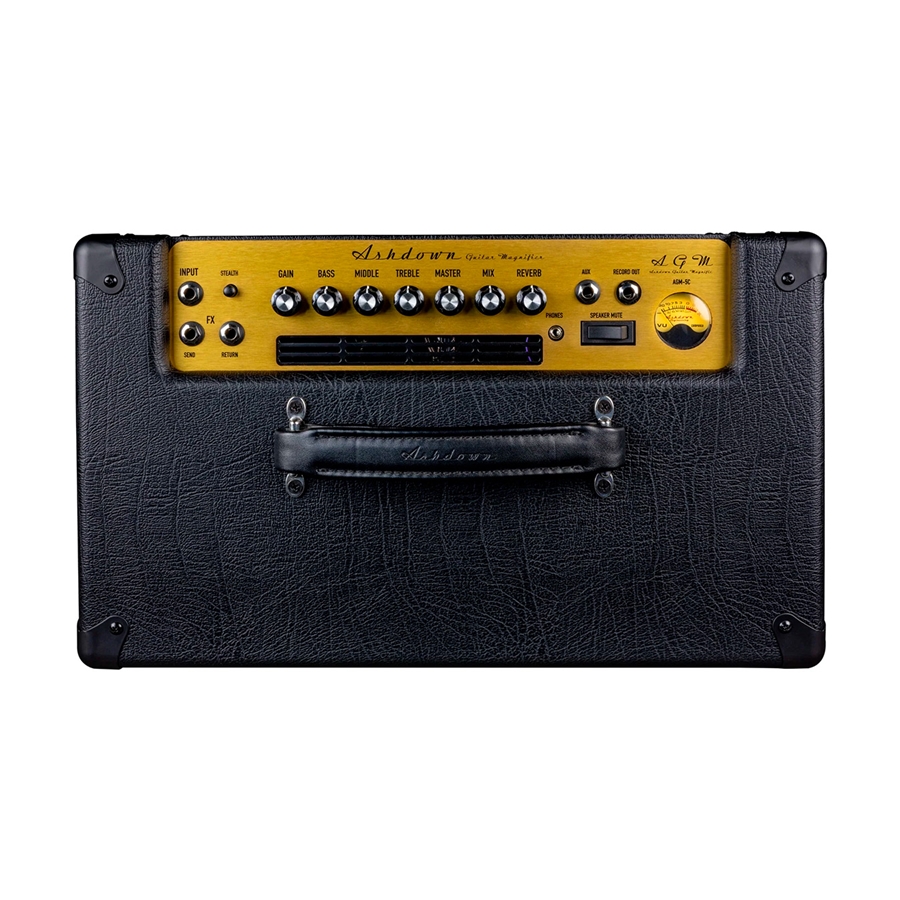 Gli amplificatori della serie AGM di Ashdown sono progettati, ingegnerizzati e costruiti presso la sede Ashdown nell’Essex, in Inghilterra. Questa serie (che sta per Ashdown Guitar Magnifier) è stata progettata dal guru britannico delle valvole Dave Green, considerando le esigenze dei musicisti moderni per i quali la portabilità, una potenza ridotta e un suono valvolare sono fondamentali. L’AGM-5C è completamente valvolare con 5 W di potenza, riducibili a 1 W tramite lo switch Stealth che attiva l’ASC (Active Speaker Compensation): questo aiuta a mantenere la profondità tonale e la risposta delle basse anche a volumi ridotti. Monta un cono Celestion G12M-65 Creamback ma, per le sessioni notturne, è dotato di un interruttore per silenziare lo speaker permettendo di utilizzare l’uscita cuffie e la funzione Record Out con simulatore di cabinet per la registrazione diretta. È dotato inoltre di riverbero Accutronics di qualità studio che fornisce profondità ai puliti, e di un loop effeti che consente di collegare pedali di modulazione o tempo mantenendo la giusta chiarezza. La sezione del preamplificatore è animata da una valvola JJ Electronics ECC83, mentre la sezione del finale da una valvola JJ Electronics EL84. Il pannello dei controlli, posto nella parte superiore dove si trova anche la maniglia, è composto dall’input, gli ingressi Send e Return e dalle manopole Gain, Bass, Middle, Treble, Master, Mix e Reverb. Completano il pannello un ingresso Aux per mandare un segnale audio all’amplificatore, un’uscita Record Out per registrare direttamente il suono utilizzando il simulatore di cabinet integrato e l’interruttore Speaker Mute per bypassare il cono utilizzando il carico fittizio interno. A fianco, l’iconico VU Meter di Ashdown. Sul retro è presente l’uscita da 16 Ohm per collegare un cabinet aggiuntivo.