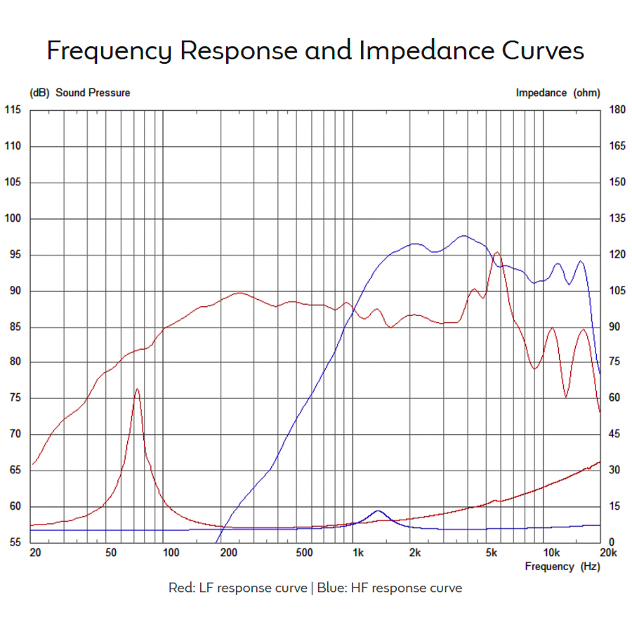 - Potenza calcolata sull’impedenza minima. Altoparlante testato in aria libera.