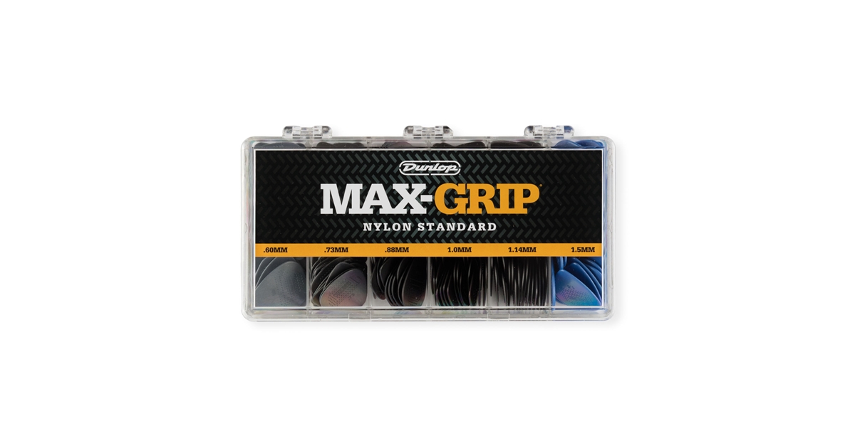 La superficie dei plettri Max-Grip, realizzata con uno specifico e non parallelo rilievo, fornisce un grip assoluto. La combinazione di questa superficie e del materiale Nylon, crea un plettro particolarmente indicato per chi cerca velocità, strumming violento, precisione e durabilità, assoluta padronanza del controllo.