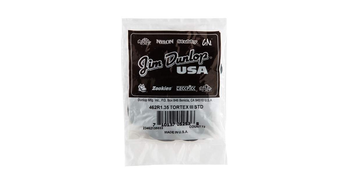 462R Tortex III Black 1.35 è il pack da 72 plettri della serie Tortex III, che unisce l’attacco brillante e secco dei plettri Tortex e la velocità e la precisione della punta dei plettri Jazz III.
