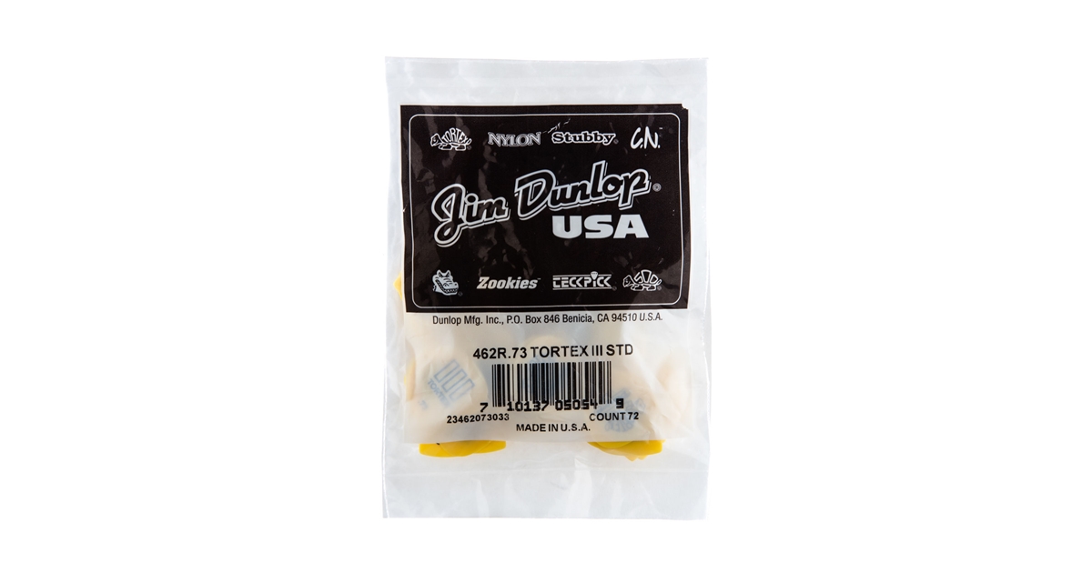 462R Tortex III Yellow .73 è il pack da 72 plettri della serie Tortex III, che unisce l’attacco brillante e secco dei plettri Tortex e la velocità e la precisione della punta dei plettri Jazz III.