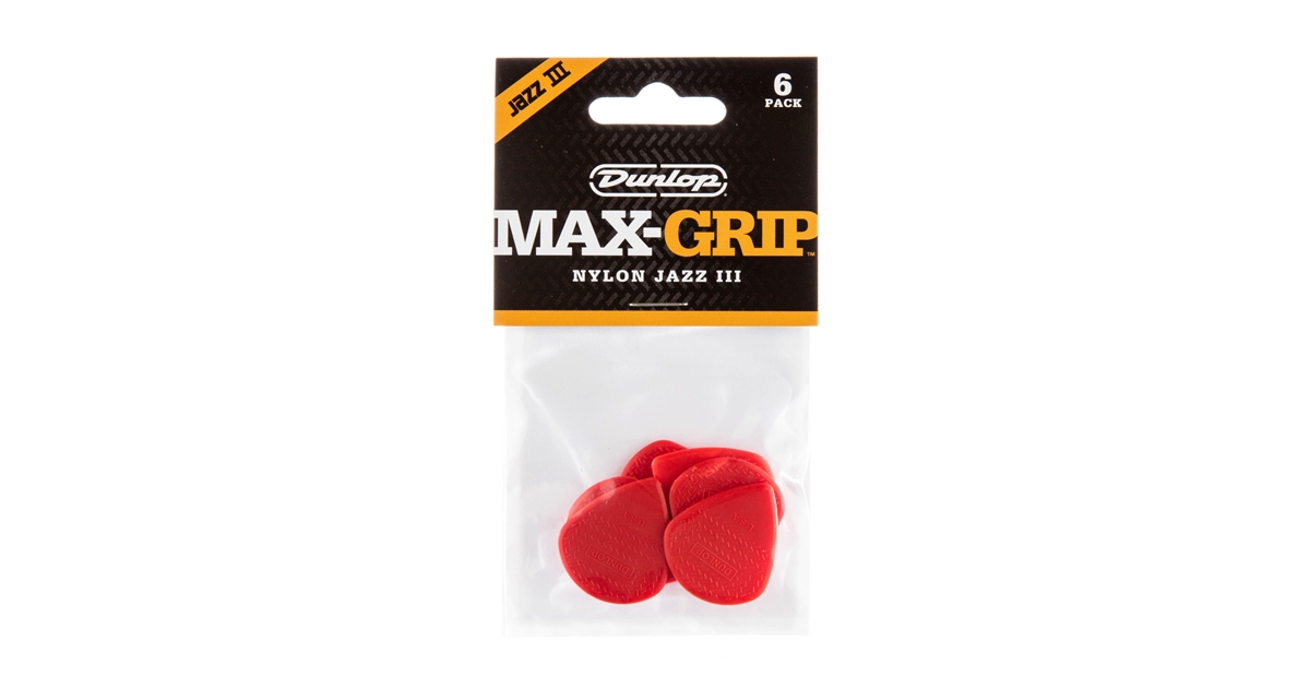 Player’s Pack da 6 plettri Max-Grip Jazz III rossi in nylon standard.