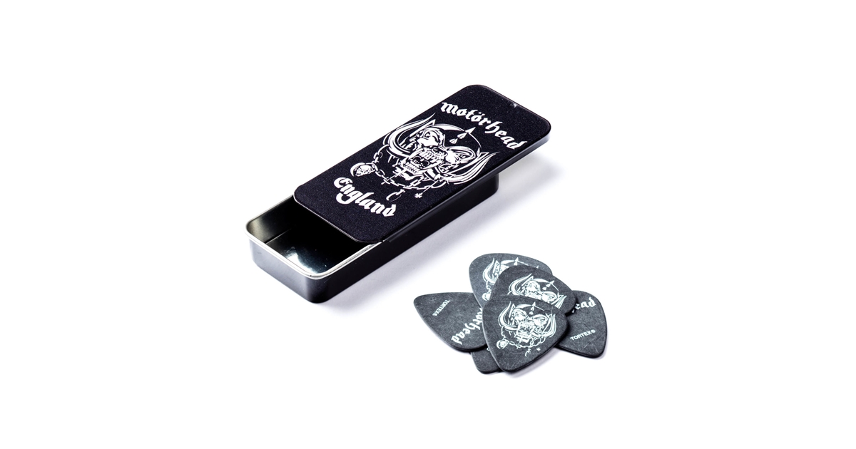 Queste Tin Box contengono sei plettri in Tortex calibro .88 con il classico ‘Warpig’ dei Motorhead.