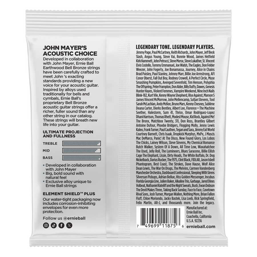 2348 Earthwood Bell Bronze Acoustic Light 11-52 è il set di corde per chitarra acustica di Ernie Ball realizzato in collaborazione con il chitarrista John Mayer, con scalatura 11-52. Sono ispirate alle leghe utilizzate per campane e piatti e offrono quindi una grande risonanza, maggiori armoniche, ottima proiezione e sustain.