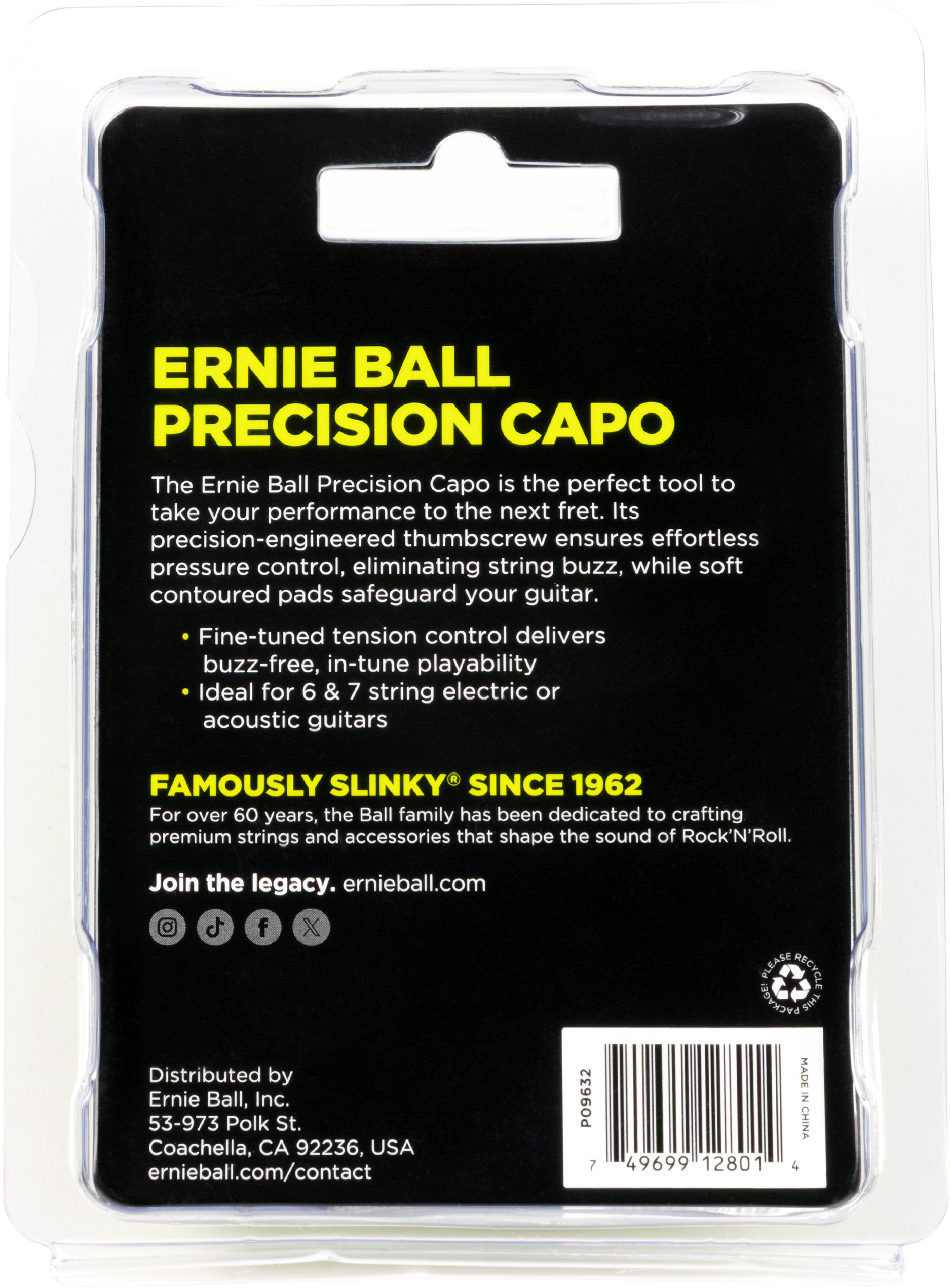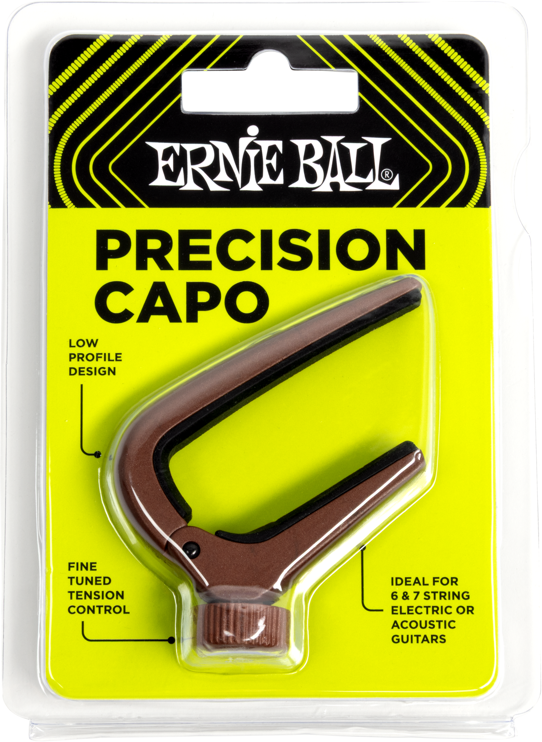 Il Precision Capo Bronze è il capotasto mobile per chitarra elettrica, acustica, a 6 e 7 corde di Ernie Ball. È caratterizzato da un design a basso profilo, leggerezza, compatibilità con varie tipologie di chitarre e il sistema di tensione con vite micrometrica che garantisce massima precisione nel tiraggio e pulizia di suono durante le esecuzioni.