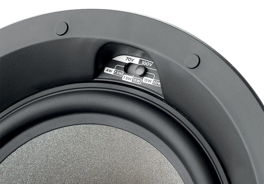 Il crossover ODC contribuisce al controllo della direttività, evitando concentrazioni del suono e migliorando la diffusione negli ambienti installativi. Il trasformatore integrato consente la selezione della potenza per impianti 70V e 100V tramite interruttore dedicato.