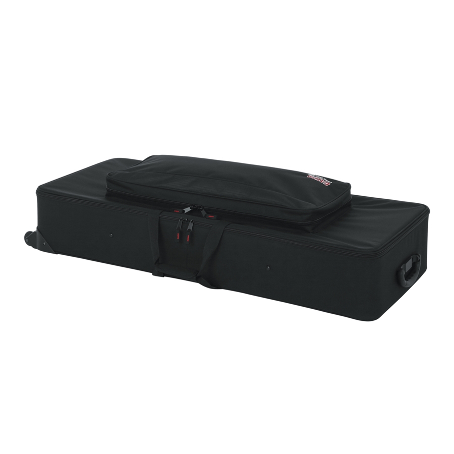 La Gator GK-61 è una custodia semirigida, leggera ma che offre una buona protezione alla tastiera. Le cinghie interne permettono di mantenere la tastiera salda all’interno della custodia, evitando i movimenti. Le ruote e la maniglia consentono di trasportarla agevolmente, mentre l’ampio scompartimento esterno permette di trasportare pedali e cavi. È pensata per il tastierista che ha bisogno di una custodia leggera da trasportare a mano. Ideale per tastiere 61 tasti.