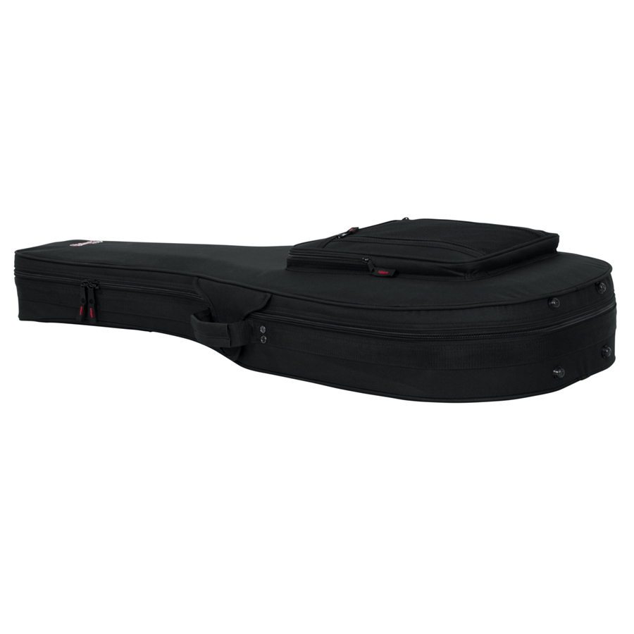 La Gator GL-DREAD-12 è una custodia progettata per offrire il meglio di due mondi: la portabilità di una gigbag e la protezione di una custodia rigida. È pensata per i chitarristi che hanno bisogno di proteggere il proprio strumento senza rinunciare alla facilità di trasporto. La tracolla rimovibile rende comodo portare la custodia in viaggio, e le due tasche interne consentono di riporre tutti gli accessori necessari. È adatta a chitarre acustiche 12 corde in formato Dreadnought.