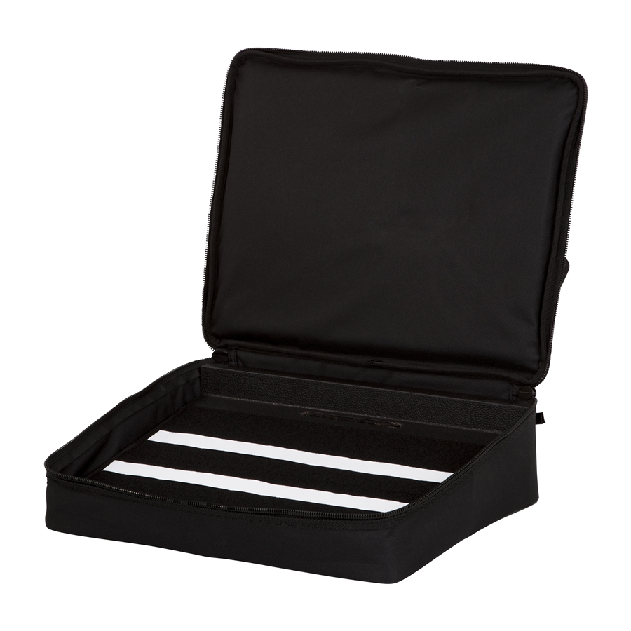 La pedalboard GPT-BLACK offre una piattaforma in compensato rivestita in Tolex, completa di una robusta borsa per il trasporto in nylon imbottito. Ideale per pedalini e accessori, questa pedalboard compatta misura 16,5′ x 12′ (42 x 30 cm) e include accessori come una maniglia per il trasporto e una tasca esterna per cavi. È progettata per un montaggio semplice grazie ai fori per il cablaggio e al velcro incluso per fissare i pedali.