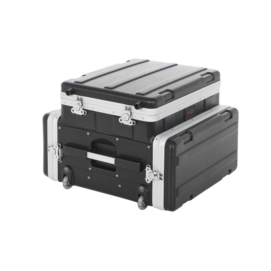 La GRC-STUDIO4GO-W è la custodia di casa Gator progettata per ospitare 4 unità rack più un laptop o un mixer nella parte superiore. La struttura in polietilene è resistente e leggera, e le ruote e la maniglia retrattile consentono un pratico trasporto. La parte superiore presenta delle cinghie per mantenere in posizione il laptop e l’interno in schiuma lo tiene al riparo dai graffi.