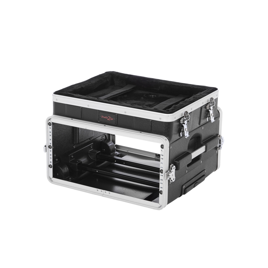 La custodia Gator GRC-STUDIO4GO-W è progettata per ospitare 4 unità rack nella parte inferiore e un mixer o un laptop nella parte superiore. Il coperchio può essere rimosso e la custodia funge da supporto per il computer. È ideale per producer, musicisti o fonici che hanno bisogno di un’unica custodia per riporre tutta l’attrezzatura necessaria per le loro sessioni. È costruita in polietilene, robusto e leggero, mentre l’interno della parte del laptop è in schiuma e presenta due cinghie per il fissaggio. Il foro tra gli scomparti inferiore e superiore consente di collegare i rack al computer o al mixer agevolmente. Dispone infine di maniglia retrattile e ruote per un comodo trasporto.