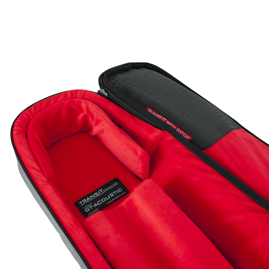 GT-ACOUSTIC-GRY è una borsa Gator della serie Transit, progettata per trasportare chitarre acustiche in totale sicurezza e comfort.