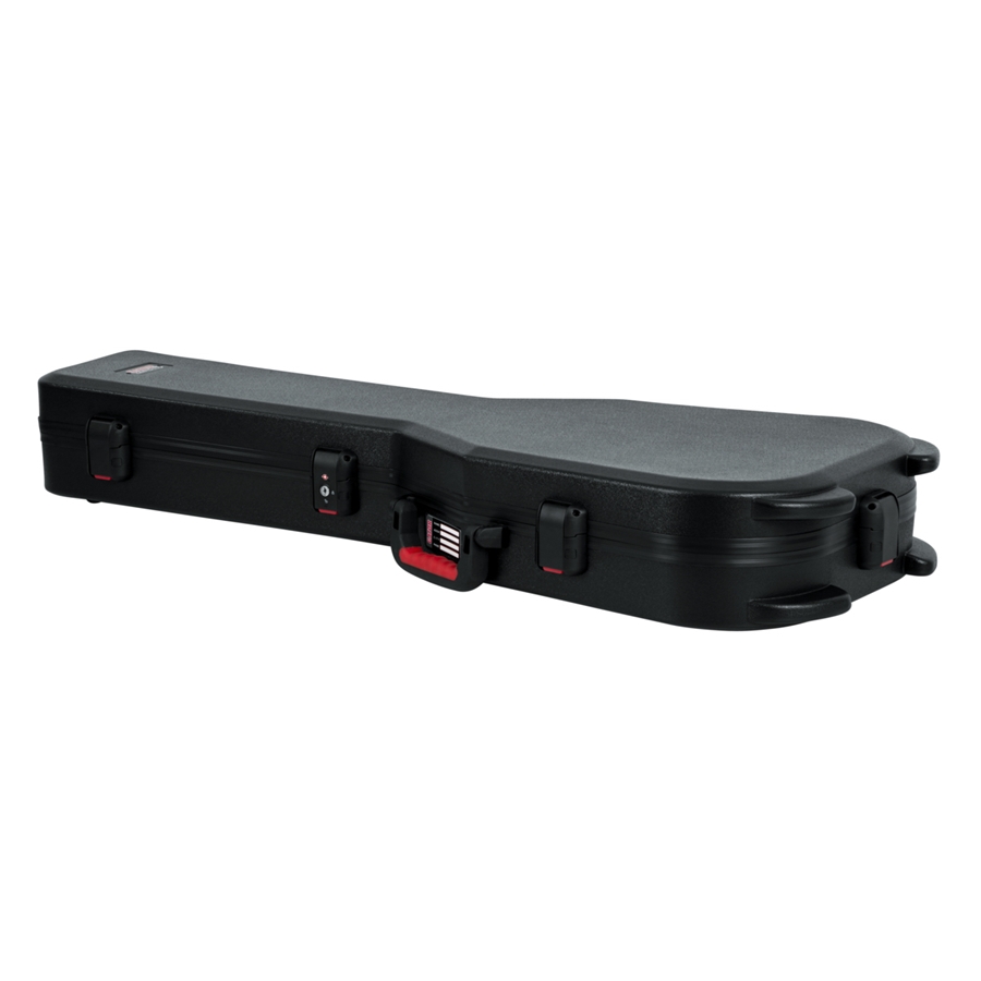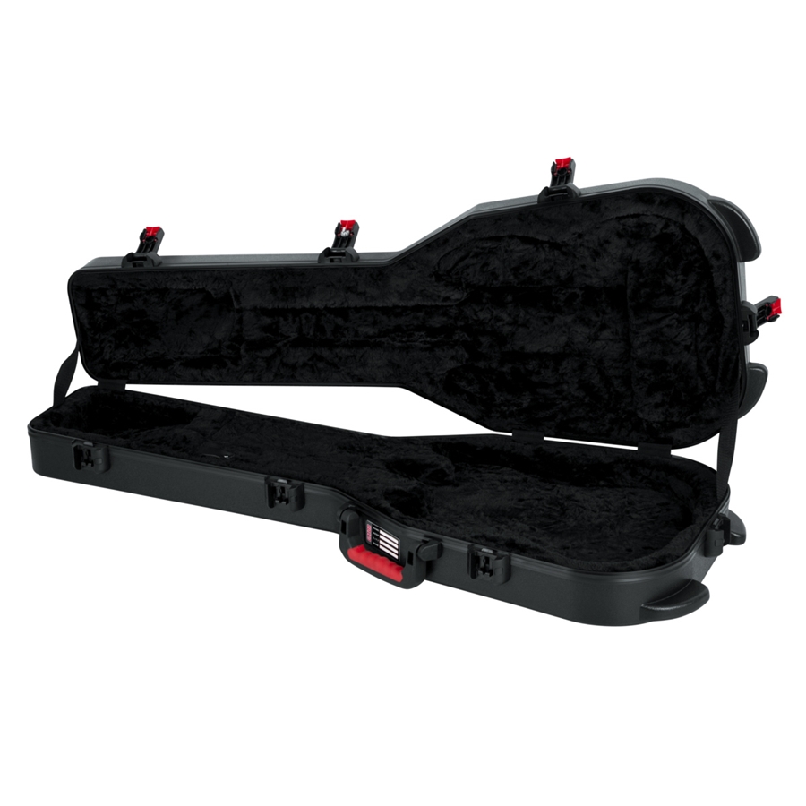 La GTSA-GTRSG è la custodia per Chitarra Elettrica in stile SG della serie Frequent Flyer TSA di casa Gator. Il guscio esterno realizzato in polietilene modellato ATA di grado militare e la chiusura centrale con sistema TSA rendono questa custodia ideale per i viaggi in aereo.