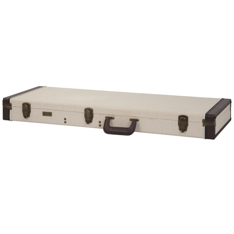 La GW-JM ELEC è la custodia per chitarra elettrica della serie Journeyman di casa Gator. Il guscio esterno realizzato in compensato è resistente, e l’interno foderato in velluto protegge lo strumento dai graffi. Le chiusure Antique Brass e l’esterno in colorazione Canvas, donano a questa custodia un aspetto vintage.