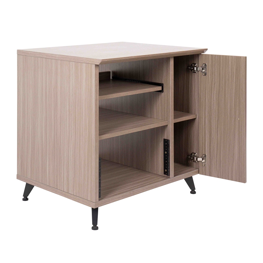Il rack GFW-ELITEDESKRK-BRN offre uno spazio di 10U per ospitare preamplificatori, processori di effetti e altre apparecchiature audio professionali. La superficie superiore da 61 x 53,5 cm consente di posizionare un piccolo mixer o accessorio. Include anche un vassoio estraibile per ulteriore spazio di archiviazione. La struttura presenta un’apertura posteriore per la gestione dei cavi e piedini regolabili per una stabilità ottimale anche su superfici irregolari.