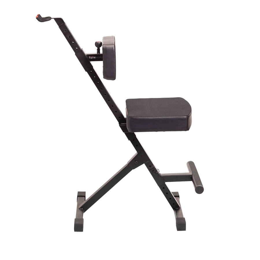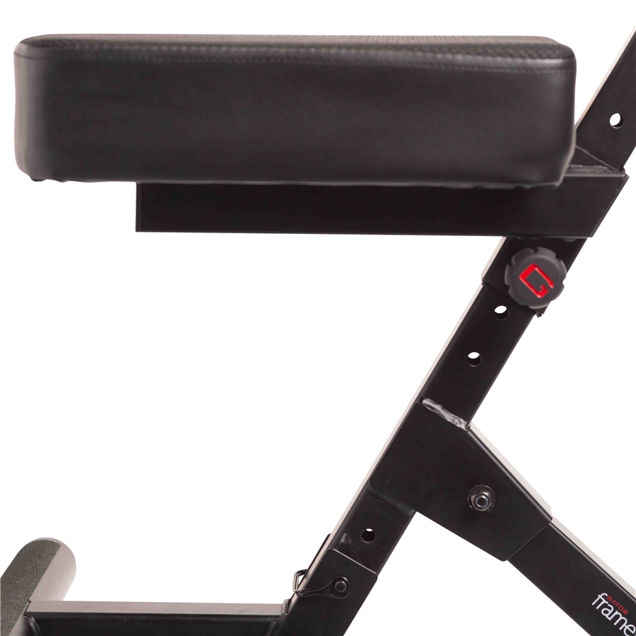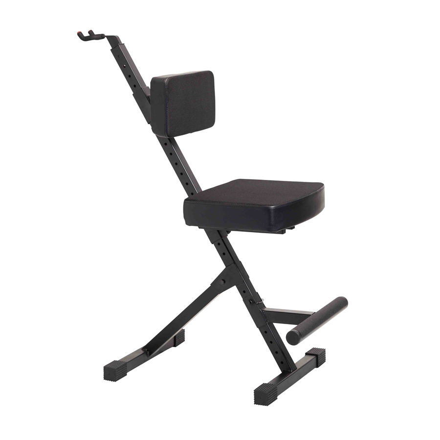 Il sedile è imbottito con uno spesso cuscino in schiuma da 76 mm, ideale per lunghe sessioni di prova o performance live. Sul retro è presente un gancio sicuro per appendere la chitarra, che si tratti di una elettrica, acustica o basso.