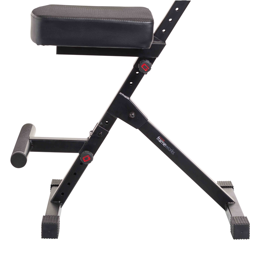 Il GFW-GTR-SEATDLX di Gator Frameworks è uno sgabello Deluxe progettato per garantire massimo comfort e praticità ai chitarristi. Con un sistema di regolazione a 3 punti, questo sgabello offre la possibilità di adattare altezza del sedile, dello schienale e del poggiapiedi, permettendo una postura ergonomica durante l’esecuzione.