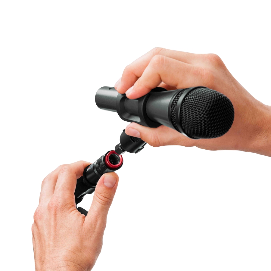 - Compatibile con qualsiasi supporto microfonico filettato da 5/8′.