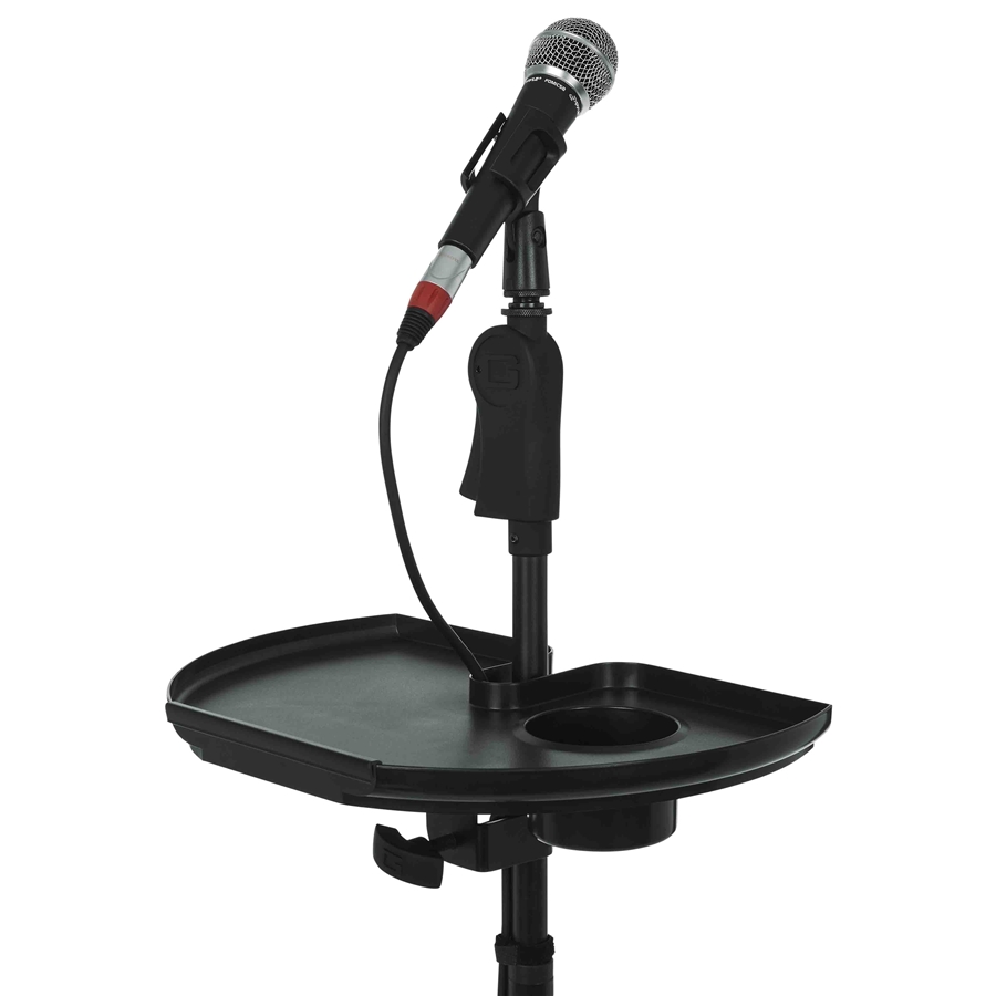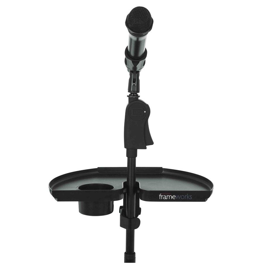 GFW-MICACCTRAYXL è il vassoio extra-large per accessori compatibile con stand microfonici, dotato di portabicchiere e supporto per plettri.
