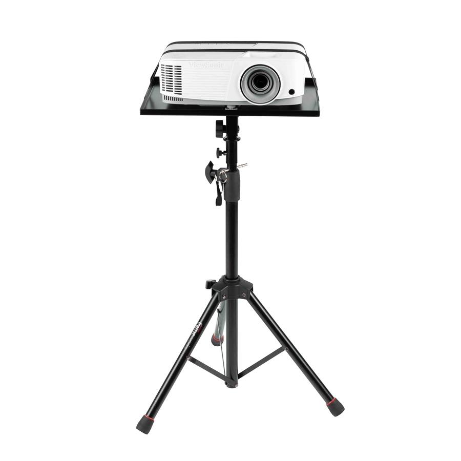 Vassoio stabile per laptop, proiettori, attrezzatura DJ e audio professionale.