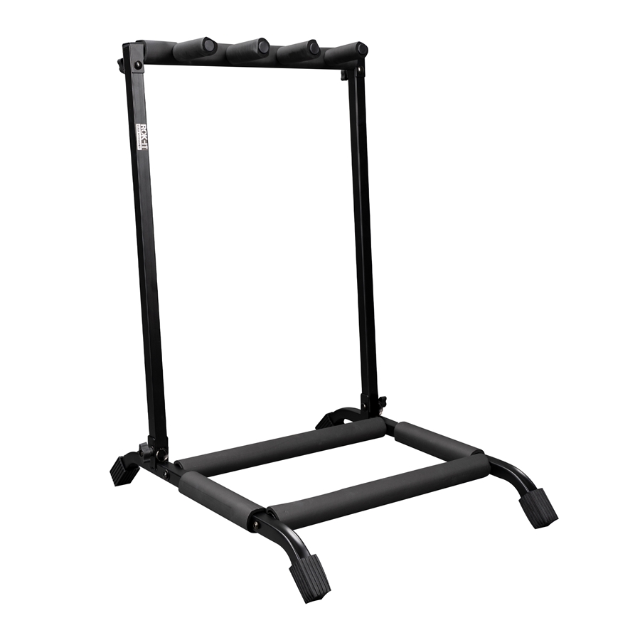 RI-GTR-RACK3 è un supporto pieghevole per 3 chitarre progettato da Rok-It per chitarristi che necessitano di una soluzione sicura e pratica per tenere più strumenti durante le sessioni in studio o dal vivo.