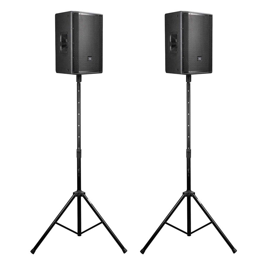 Ogni supporto è dotato di un meccanismo di regolazione dell’altezza con manopola a vite e pin di sicurezza per un posizionamento sicuro. Il set include una comoda borsa in nylon per il trasporto, ideale per DJ, band e tecnici audio sempre in movimento.