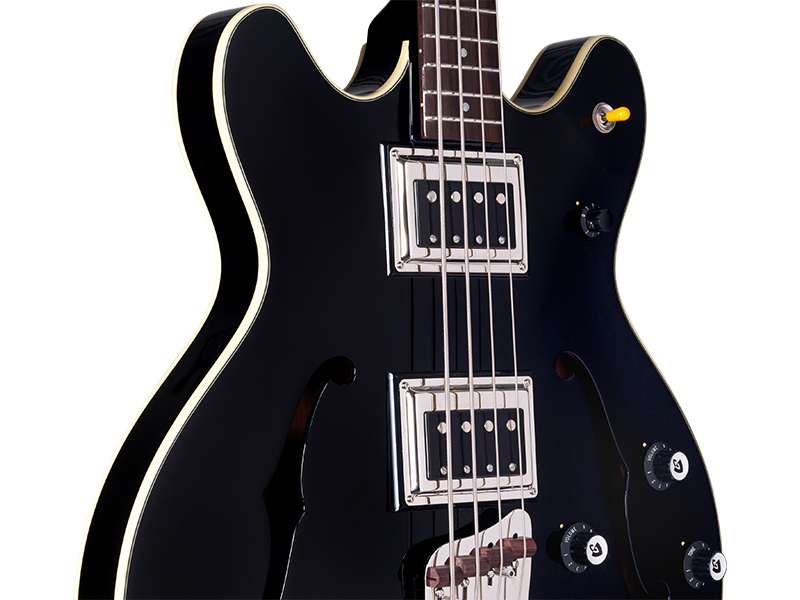 ‘Starfire Bass II è un basso da due pickup semi-hollow che aggiunge importanti possibilità sonore ad uno dei più iconici modelli Guild: il basso Starfire. L’originale Starfire Bass II debuttò nel 1967, subito dopo la versione a singolo pickup, e rapidamente trovò apprezzamento da parte di musicisti come Jack Casady (Jefferson Airplane) e Phil Lesh (Grateful Dead). L’ aggiunta del pickup Bisonic BS-1 al manico dona allo strumento un suono caldo e morbido, per grande versatilità. Questo basso a doppio cutaway presenta top e fondo in laminato di mogano arcuato (Arched) , il manico è in mogano in tre pezzi con rinforzo in acero centrale con profilo ”Soft U”, il nut è di 38 mm e la scala dello strumento è di 781 mm, la tastiera è in palissandro con dot in madreperla. In dotazione troviamo i pickup dual Guild BS-1, con manopole individuali per volume, tono, e master volume e uno switch per la selezione, il ponte regolabile della Guild con sellette in palissandro o Ebano mentre le meccaniche sono grover 142 Vintage. Una chiara finitura high gloss poliuretanica lucida Emerald Green contribuisce alla bellezza di questo basso. Starfire Bass II offre il classico suono Guild vintage vibe ai bassisti moderni. Inclkude la custodia rigida TKL.’