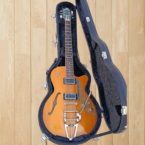 HJ-800 – Vintage Sunburst – Top in abete massello sagomato con corpo cavo in acero, manico in acero, Resinator Floating Bridge, Hagstrom Trapeeze, 2 x Custom 58 Alnico 5, 2 x Vol RC-Circuit, 2 x Tone, 3-Way Pick-up Toggle Switch, Lunghezza scala 25.00, H-Expander Truss Rod, 18:1 Hagstrom Tuners, Tastiera Resinator