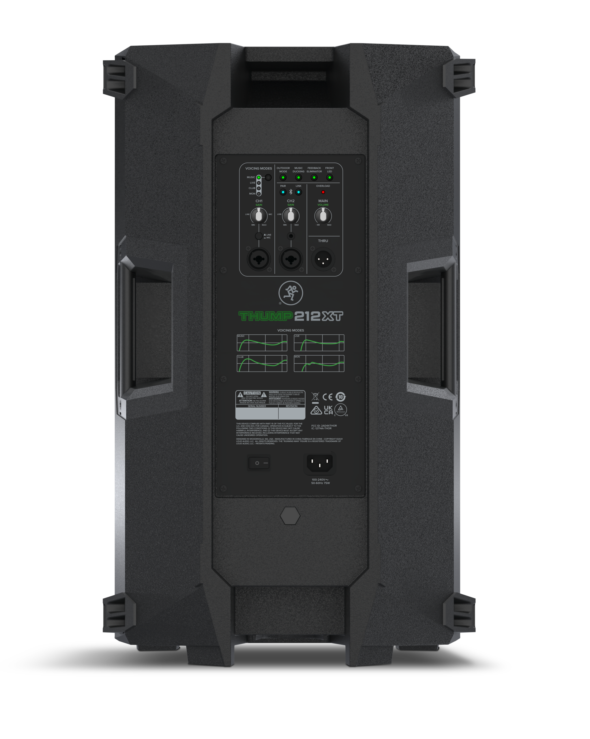 Sotto il cofano del ThumpXT c’è un potente processore che garantisce la qualità del suono. Con 4 modalità sonore specifiche per ogni applicazione, è possibile ottimizzare istantaneamente gli speaker per l’uso previsto con la semplice pressione di un pulsante. Music è stato creato per esaltare la musica preregistrata, Live è perfetto per l’amplificazione generale, Club offre una buona potenza dei bassi e Monitor ottimizza il suono per l’uso da pavimento, tenendo sotto controllo il feedback acustico.