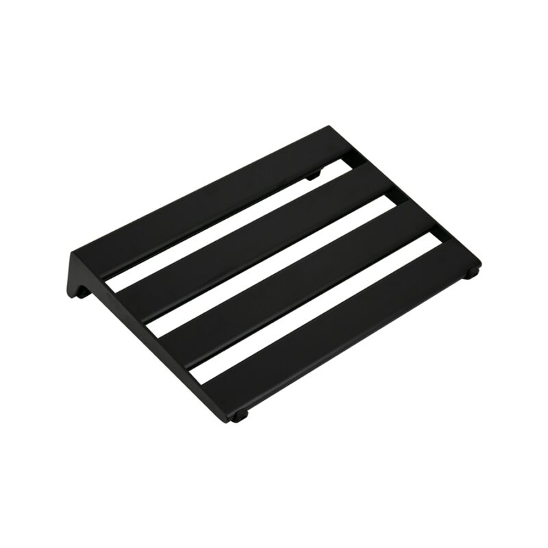 La Pedalboard Rail è progettata con un angolo di inclinazione ottimizzato per permettere al musicista di di accedere comodamente ai pedali, e per lasciare spazio a sufficienza per inserire un alimentatore sotto la pedaliera.