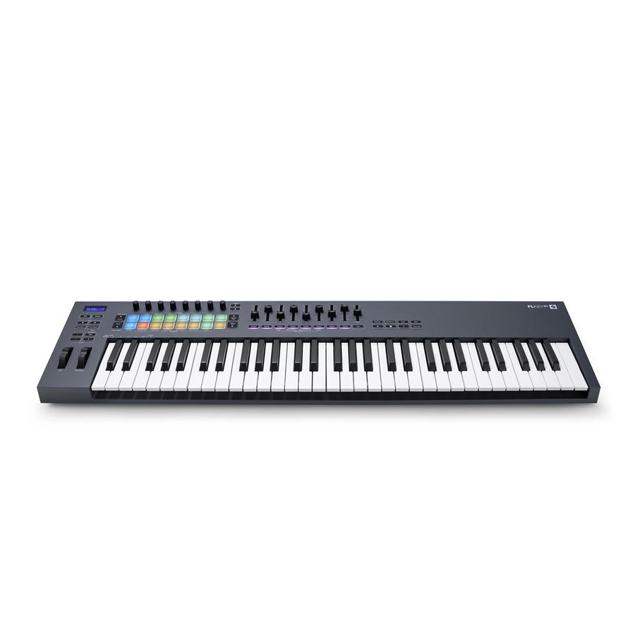 Novation FLKEY 61 è una tastiera MIDI USB a 61 tasti per il software DAW FL Studio. Tastiera semi-pesata sensibile alla velocity. Step sequencer, 16 pad sensibili alla velocity, preset e suoni selezionabili direttamente dal controller. 8 potenziometri rotativi, controllo del mix con 9 fader da 45mm e tasti di trasporto. Modalità Fixed Chord, User Chord e Scale Chord.