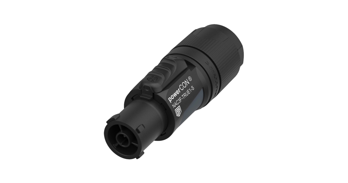 powerCON TRUE1 di NEUTRIK è la serie di connettori di rete con bloccaggio per applicazioni gravose ed impegnative, ideali ovunque sia necessaria una soluzione molto robusta in combinazione con un dispositivo di blocco per garantire un collegamento elettrico sicuro. powerCON TRUE1 è un connettore con potere di interruzione (CBC), ovvero può essere collegato o disconnesso sotto carico o sotto tensione.