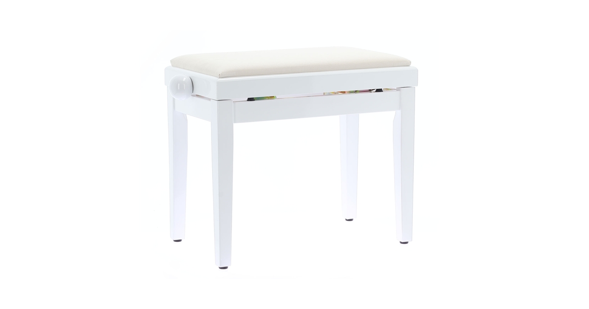 PB/010 WH L di Quik Lok è una panca di qualità in legno, ideale per pianoforte, con seduta in velluto millerighe, rivestimento durevole nel tempo. E’ dotata di un meccanismo in metallo di regolazione dell’altezza che consente un’escursione da 48 a 57 cm. Disponibile in bianco lucido, ha un carico massimo di 100 Kg.