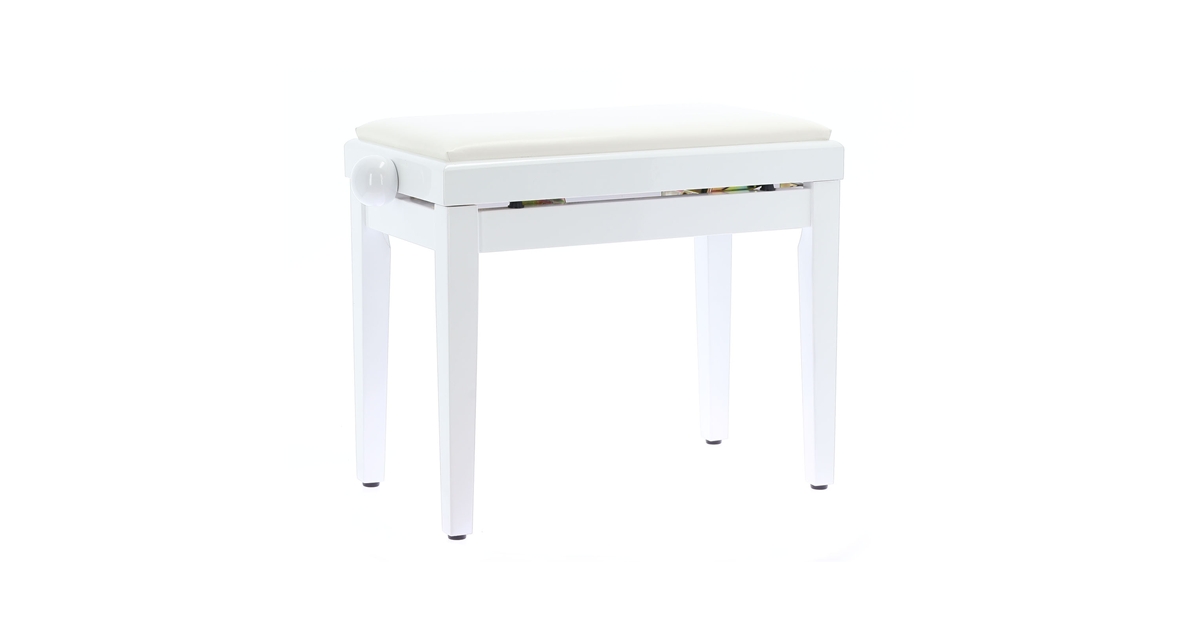 PB/100 WH L di Quik Lok è una panca di qualità in legno, ideale per pianoforte, con seduta in Sky bianca, rivestimento durevole nel tempo. E’ dotata di un meccanismo in metallo di regolazione dell’altezza che consente un’escursione da 48 a 57 cm. Versione con finitura bianco lucido, carico massimo 100 Kg.
