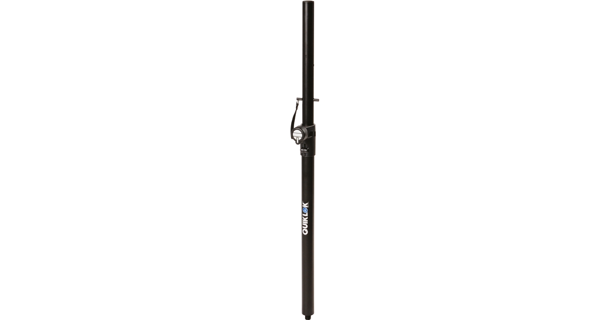Il tubolare Quik Lok S/333 è pensato per installare il satellite sul subwoofer. La parte superiore del tubolare ha diametro standard di 35 mm per adattarsi alla maggior parte degli speaker mentre la parte inferiore ha diametro 40 mm. All’estremità inferiore del tubolare Quik Lok S333 è incorporata una vite filettata standard M20 che consente il fissaggio ad avvitare sui subwoofer con flangia predisposta. L’altezza del tubolare è regolabile da 80 cm a 110 cm per offrire il massimo livello di adattamento a ogni situazione e configurazione di impianto. La manopola centrale e la spina di bloccaggio rendono la regolazione rapida e sicura. Realizzato in acciaio per garantire la massima robustezza.