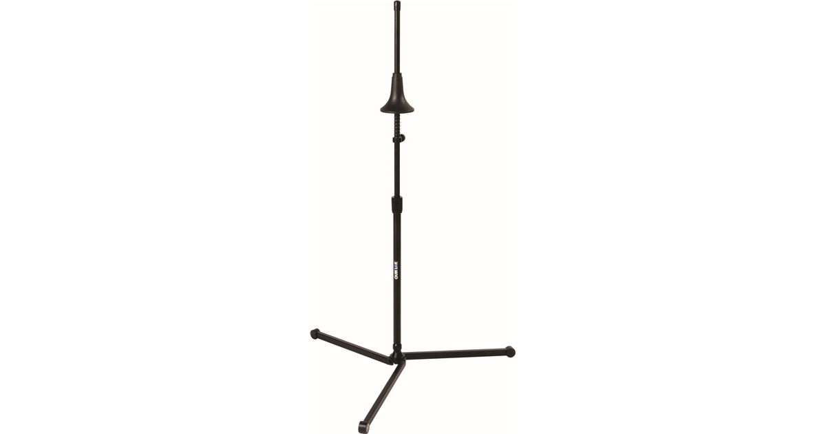Stand compatto per trombone, con campana ammortizzata da molla e regolabile in altezza. Costruzione solida tutta in metallo, l’ampia base treppiede assicura la massima stabilità. La campana di appoggio è ricoperta da una morbida gomma anti graffio per proteggere la finitura dello strumento. L’originale design permette di chiudere rapidamente il treppiede, diventando estremamente compatto e pratico da portare in borsa ed in tour. Disponibile verniciato nero antiriflesso.