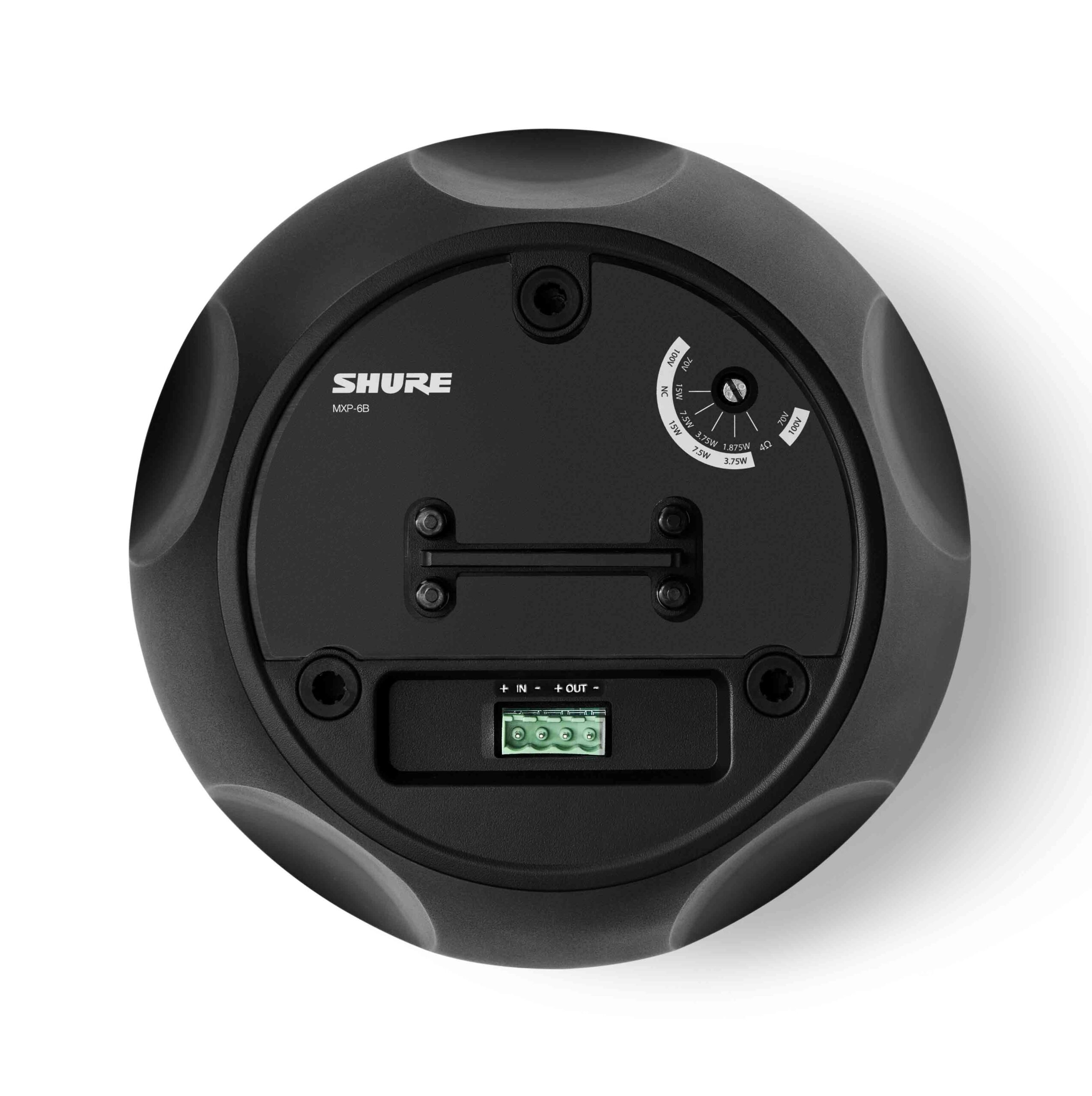 Diffusore passivo a sospensione per conferenze con doppio driver. Risposta in frequenza 90 Hz – 20 kHz, impedenza 4 O, sensibilità 93 dB SPL (1W/1m), potenza max 28 W. Dispersione 95°, SPL max 113 dBZpk. Connettore a 4 pin (pitch 5,08 mm), selettore 70/100V o 4O posteriore. Peso 2,5 kg. Dimensioni 279 x 230 x 230 mm. Compatibile con Shure MXN-AMP.