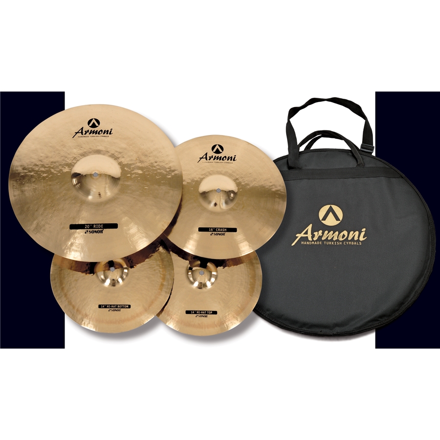 Tutti i piatti Armoni sono realizzati esclusivamente per Sonor in bronzo B20 (un mix di 80% rame e 20% stagno). L’intero processo di produzione è costituito da metodi tradizionali ed è totalmente affidato alle mani esperte degli artigiani di una azienda turca. Dopo la fusione e la tempra del Bronzo B20, il materiale viene laminato su dischi e nella fase finale, martellato e lucidato a mano per ottenere una finitura brillante. L’intenso processo di martellatura e un preciso metodo di tornitura su due lati, innalzano il valore e garantiscono prestazioni eccezionali.