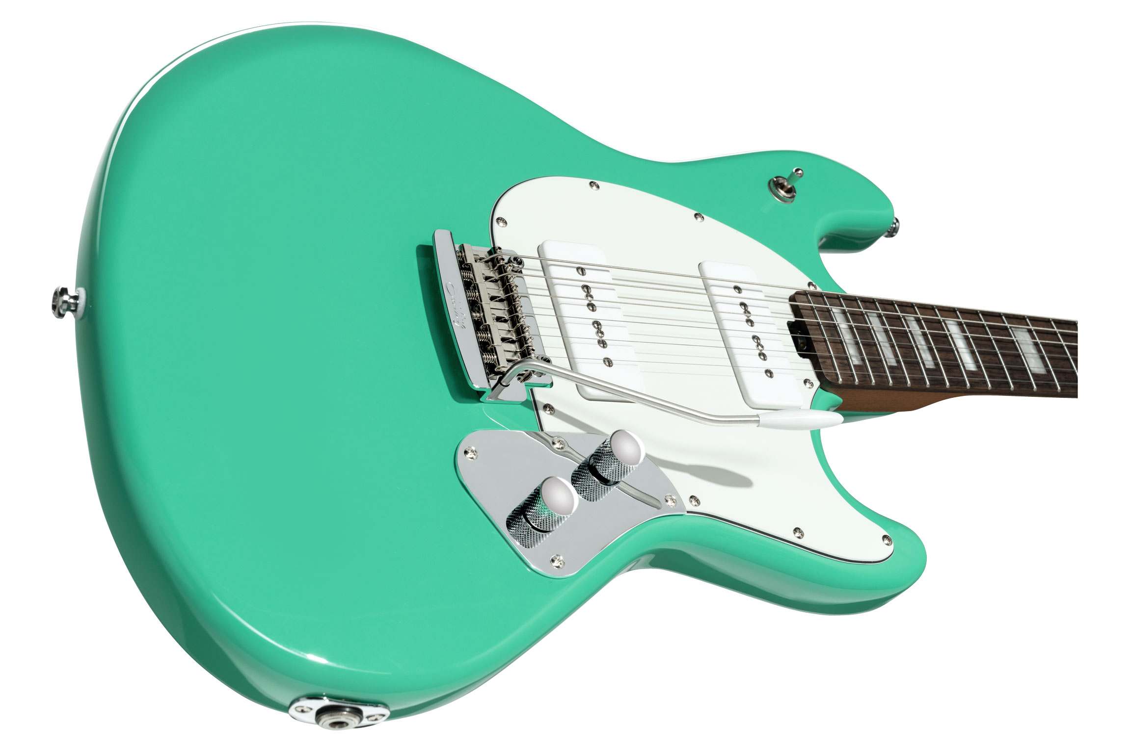 La SR50X Seafoam Green è la chitarra elettrica della serie Standard di Sterling by Music Man in colorazione Seafoam Green. Presenta corpo in Pioppo, manico in Acero roasted e tastiera 22 tasti in Palissandro. Ha una lunghezza di scala da 648 mm, larghezza del capotasto di 42 mm, meccaniche autobloccanti, due pickup single-coil P90, controlli di volume con push-push per boost segnale, tono e switch pickup a 3 vie.