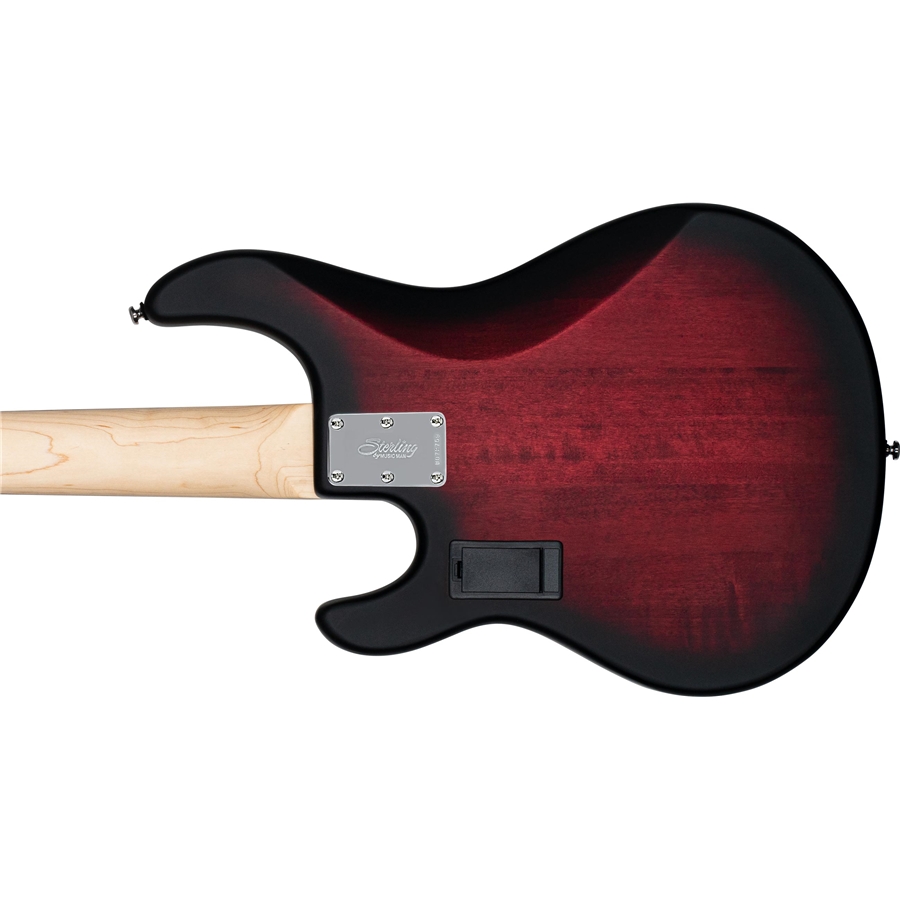 Un omaggio al leggendario basso Stingray di casa Music Man, lo Stingray Ray5 HH Ruby Red Burst Satin di Sterling by Music Man è realizzato in finitura satinata con corpo in Tiglio, manico in Acero e tastiera in Jatoba. Da un punto di vista dell’elettronica monta 2 pickup Ceramici humbucker Sterling, alimentati da un preamplificatore attivo con controlli di Volume, selettore blade a 5 vie ed Eq a 2 bande. Ha una tastiera a 22 tasti medium, lunghezza della scala di 864 mm, radius di 12′, larghezza al capotasto di 45 mm, meccaniche Open Gear, truss rod a singola azione e giunzione manico/corpo a 6 viti.