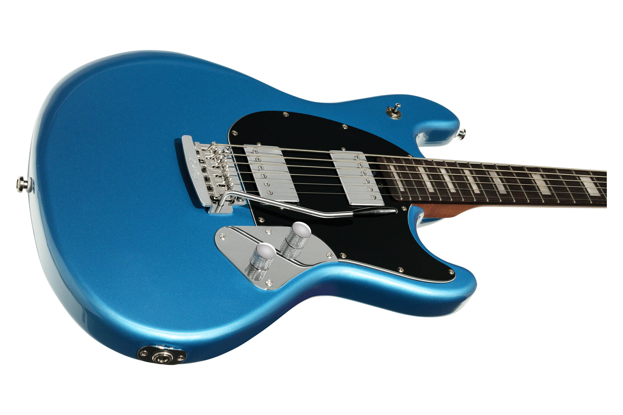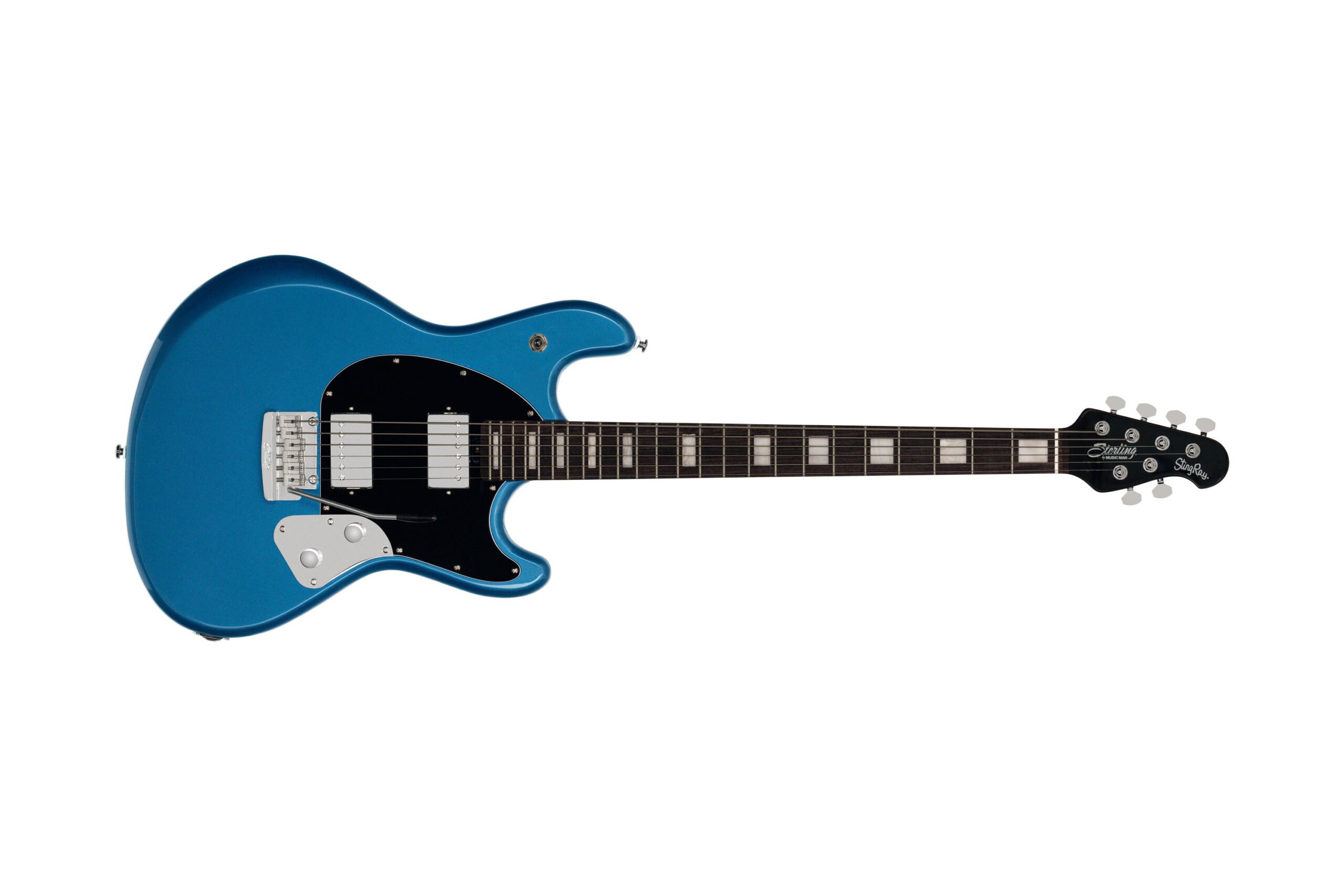 La StingRay SR50 Baritone Toluca Lake Blue è la chitarra elettrica baritona con accordatura in B standard della serie ‘StingRay’ di Sterling by Music Man. È realizzata con corpo in Pioppo, manico in Acero roasted e tastiera 24 tasti in Palissandro. Presenta la configurazione di pickup H-H, con due humbucker ceramici, switch a 3 vie e controlli di volume e tono.