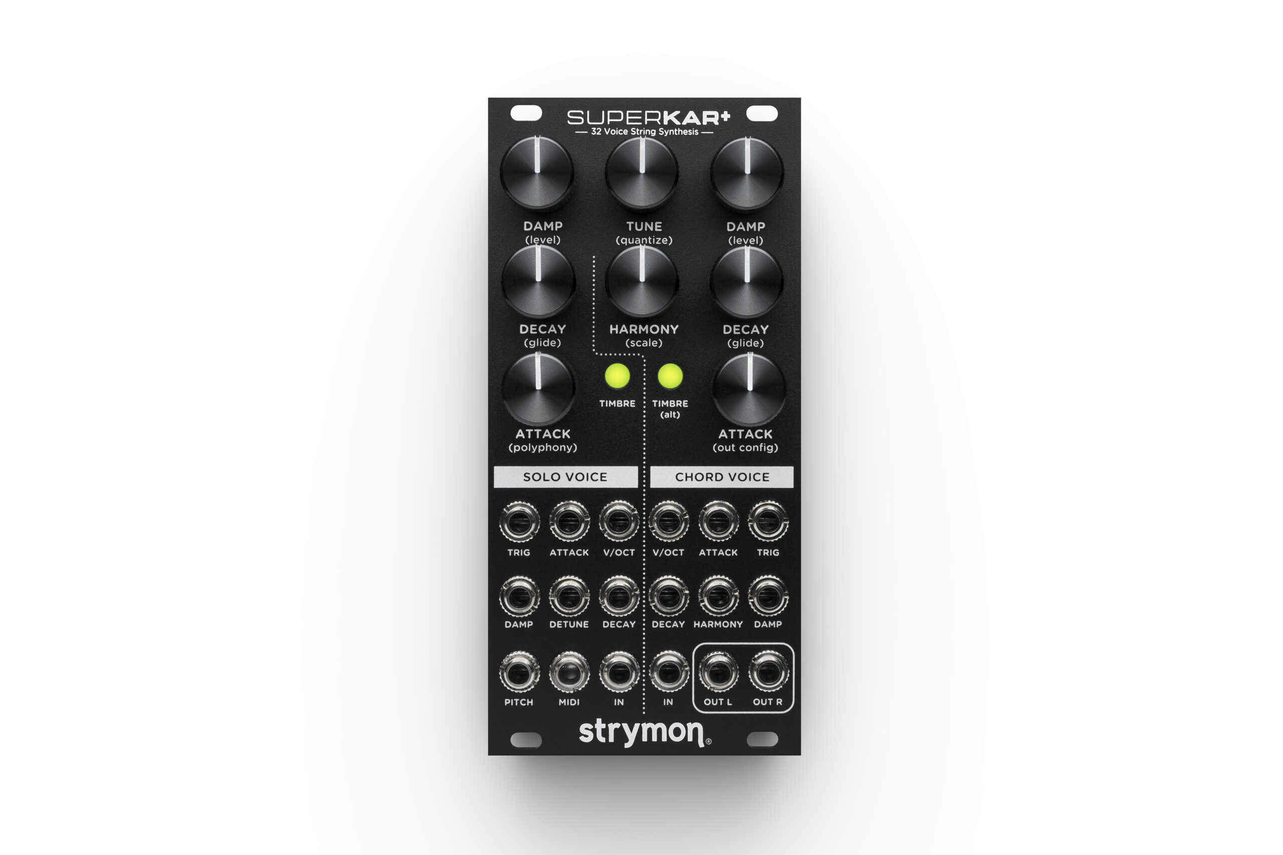 SuperKar+ porta la sintesi Karplus Strong a nuovi livelli, offrendo 32 voci polifoniche e una grande varietà di texture pizzicate, sfregate, soffiate o percussive per stimolare la tua esplorazione sonora.