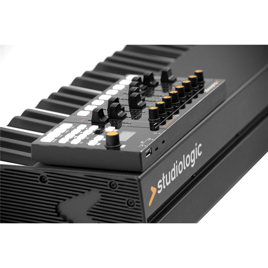 - Integrazione con le tastiere StudioLogic Serie SL: 4 Zone. Controllo delle Zone: 16 Sets (Knob + Slider + Tasti): 2 Master Sliders